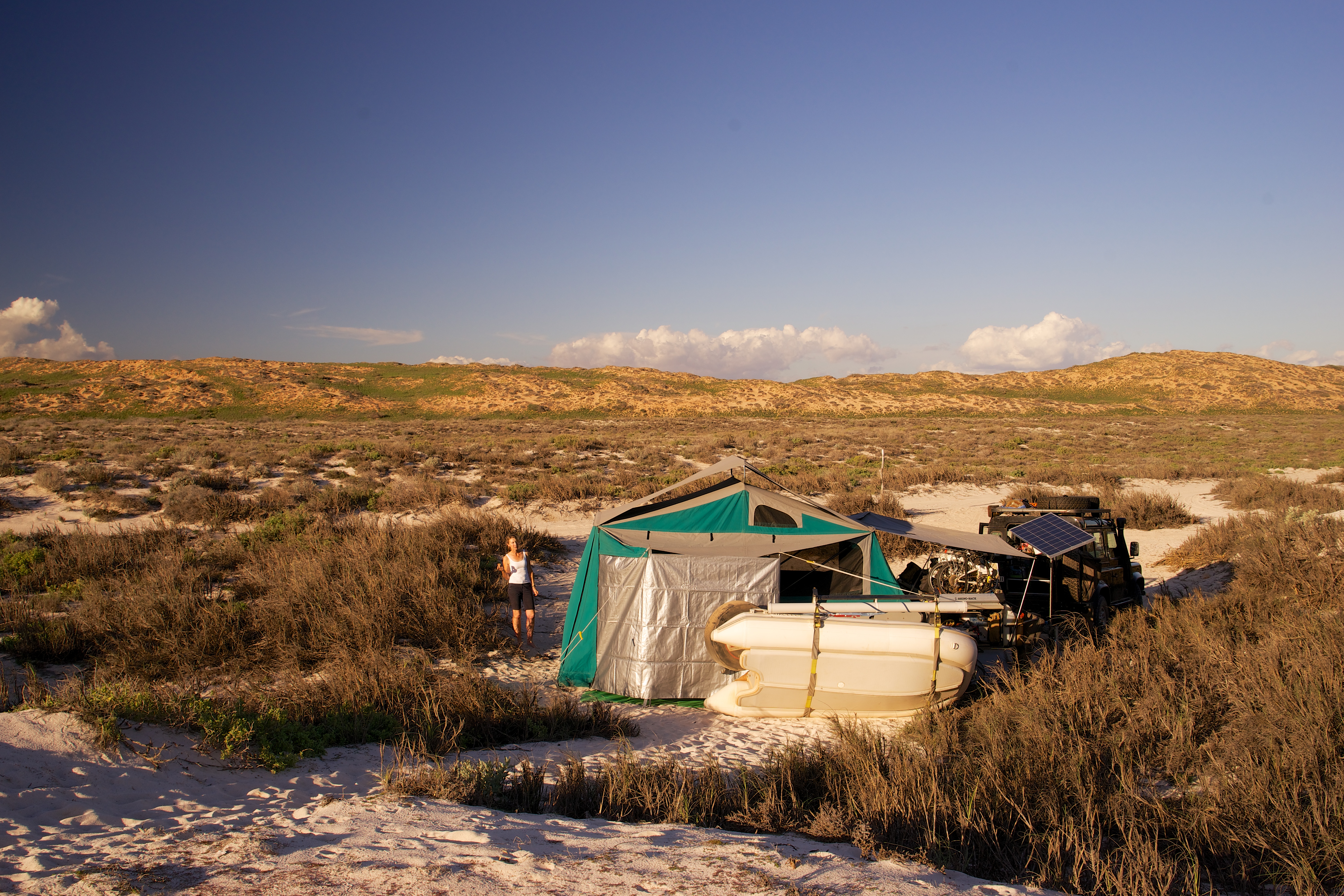 Our camp site behind the dunes. The sun rose over the hills in the background & set over the Ningaloo Reef.